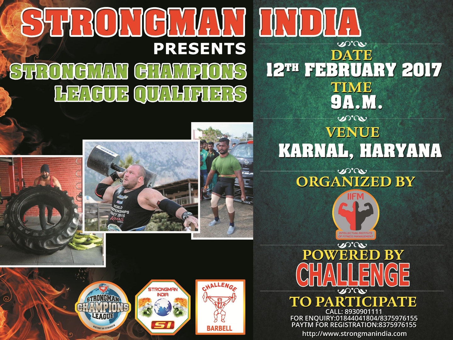 Strongman India presents Strongman League 1 on 12th February, 2017 at Town Park, Karnel, Haryana. Organized by IIFM and Powered by CHALLENGE BARBELL.